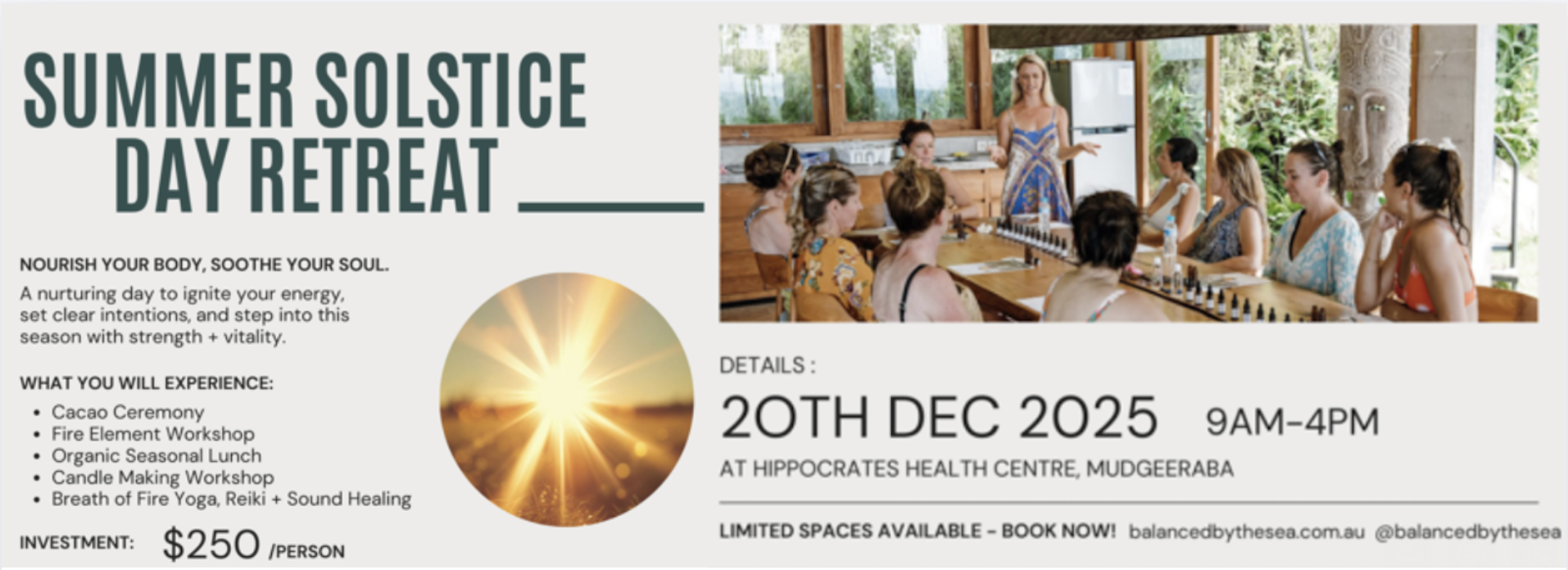 This retreat offers a simple and meaningful way to reconnect with yourself, reset your focus, and start the summer feeling clear, aligned, and energised.